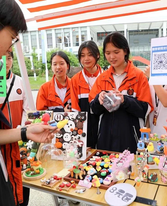 活動期間恰逢校園展賣活動,十余個攤位上商品琳瑯滿目,師生共創(chuàng)的工藝作品集中展示了學(xué)校“三全育人”成果實(shí)效,吸引了與會教師駐足購買、拍照留影。