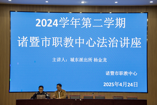 近日,諸暨市職業教育中心德育處,特別邀請了學校的法制副校長——城東派出所民警楊金龍,為全校學生舉辦了一場深刻而生動的安全教育法治講座。此次講座旨在強化學生的法律意識,提升自我保護能力,并促進校園安全文化的建設。