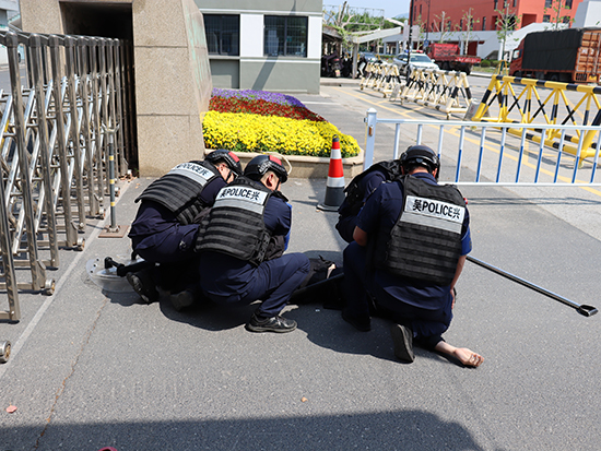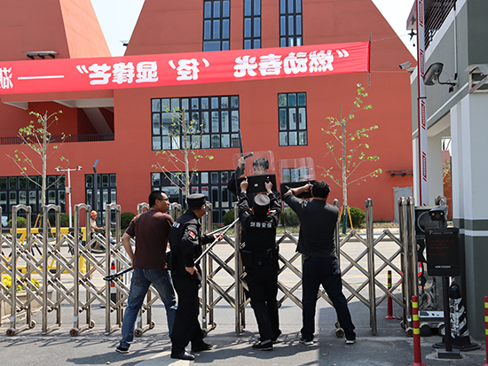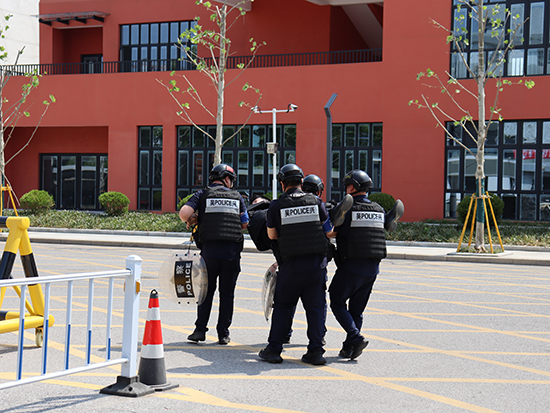 演練前,安保隊負責人講解關鍵防暴知識與技能。刺耳警報響起,防暴演練啟動。“歹徒”持械欲闖入校園,安保人員即刻反應,持防暴器械組成防線,勇敢與“歹徒”對峙周旋。學校應急小組與趕到的民警緊密配合,迅速將“歹徒”制服。全程緊張有序,各環節配合默契。