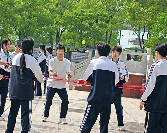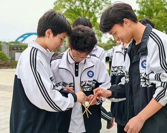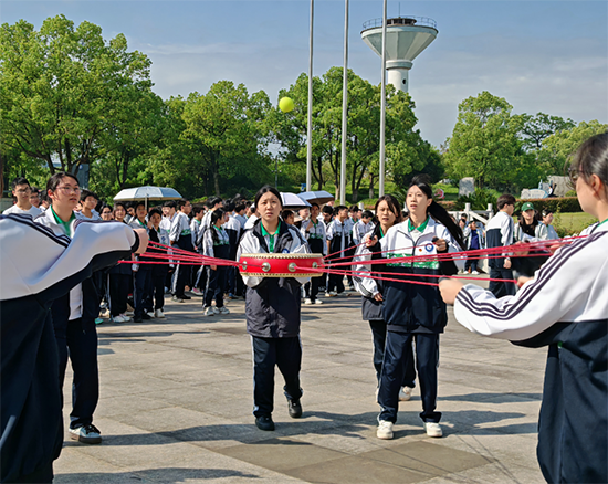 本屆運(yùn)動(dòng)會(huì)將心理健康教育與趣味運(yùn)動(dòng)深度融合,既有傳統(tǒng)項(xiàng)目的煥新升級,也有創(chuàng)新設(shè)計(jì)的腦洞大開。例如,“珠行萬里”中,同學(xué)們用U型槽接力傳送圓球,稍有不慎便需全員折返,考驗(yàn)?zāi)托呐c默契;“嘴巴嘟嘟”要求選手僅用嘴唇夾住吸管傳遞紙杯,滑稽動(dòng)作引發(fā)陣陣歡笑;“蒙眼敲鑼”則需隊(duì)友化身“人形導(dǎo)航”,用聲音引導(dǎo)蒙眼者穿越障礙敲響銅鑼,現(xiàn)場“向左!向右!”的指令聲此起彼伏。最受歡迎的“同心鼓”項(xiàng)目中,10人團(tuán)隊(duì)通過拉繩合力顛球,有班級創(chuàng)下連續(xù)50次不落地的紀(jì)錄,歡呼聲響徹操場。