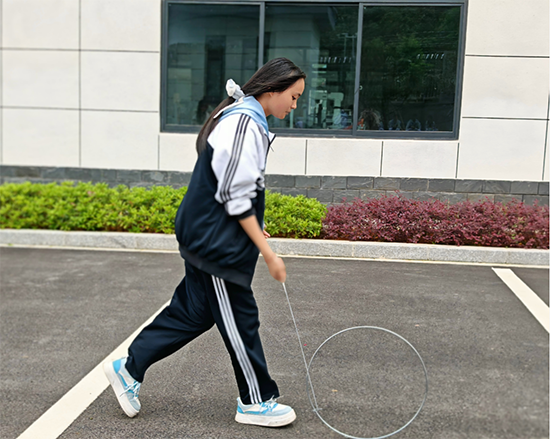 活動(dòng)現(xiàn)場,同學(xué)們拋開學(xué)業(yè)壓力,化身“創(chuàng)意玩家”:滾鐵環(huán)賽道上,有人“花式繞樁”秀出個(gè)人技;擊掌傳紙環(huán)節(jié),隊(duì)伍用“人墻戰(zhàn)術(shù)”護(hù)住紙張逆風(fēng)沖刺;坐地起立項(xiàng)目里,班級嘗試“疊羅漢式借力”,雖屢次跌倒卻越挫越勇。2308班祝琦磊同學(xué)感慨:“和隊(duì)友一起‘翻車’又一起解決問題,感覺班級凝聚力瞬間拉滿!”