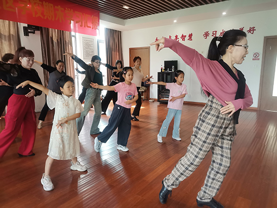 本次活動以“融合”與“互助”為核心理念,精心推出國畫、書法、聲樂、舞蹈、布藝、古箏、手工、英語、走秀等豐富多彩的課程。在三墩鎮社區學校的扇藝課堂上,丁爺爺耐心指導孩子們運筆技巧,從墨色濃淡間感悟中國傳統美學的深厚底蘊;轉塘街道社區學校的合唱教室里,老年學員與孩子們共同演繹歌曲《世界贈予我的》,用歌聲傳遞“以溫柔目光回饋世界”的人生智慧;留下街道社區學校的布藝課上,張奶奶手把手教孩子們縫制小布袋,在一針一線間傳承精益求精的工匠精神。