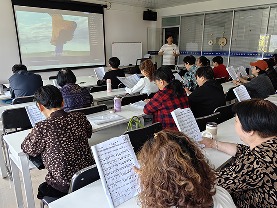學員們的學習熱情高漲,大家跟隨著宋老師的節奏,一句一句認真學唱。盡管有些學員起初在音準和節奏上不太準確,但在老師和班長的鼓勵下,他們不斷嘗試,逐漸找到了感覺。李阿姨笑著說:“這首歌旋律太美了,唱著唱著,我好像真的把心里的思念都唱出來了。”王大爺也感慨道:“在這兒學唱歌,不僅能提升自己,還能和大家一起感受這美好的音樂,真是太開心了。”