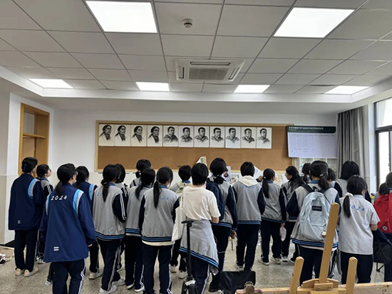 下午,由學院副校長查文婷帶隊來到塘棲中學,同學們漫步在充滿藝術氣息的校園中。在塘棲中學副校長胡春英的陪同下,同學們參觀了校史館、名師長廊、勞動基地和文體樓等區域。胡春英副校長特別介紹了學校多個素描創作工作室、色彩創作工作室、美術專業畫室以及音樂專業教室。在繪畫作品展廳里,一幅幅精湛的畫作讓同學們感受到藝術創作的魅力,也體會到技藝錘煉的不易。