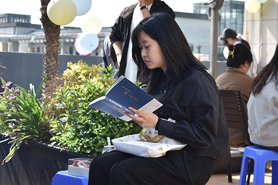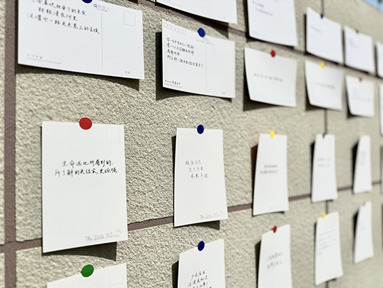 活動入口處,一面“春日之信”簽到墻悄然等候著老師們的到來,每張明信片上寫著來自多本書籍中的金句。青年教師們駐足墻前,最終選定最能觸動內心的那張卡片。翻轉卡片,背面標注的書名即為專屬簽到禮物。老師們手持明信片與書籍合影,開啟了這場活動的美好序章。