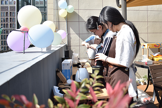 活動最后,一場溫馨的咖啡手沖體驗與下午茶時光將氛圍推向輕松愉悅。在蔣萊老師指導的咖啡社同學們的帶領下,老師們親手研磨咖啡豆、沖泡咖啡,感受從豆子到杯中飲品的奇妙過程。伴隨著咖啡的香氣,大家圍坐在一起,或交流讀書心得,或分享教學趣事,在輕松的氛圍中拉近了彼此的距離。