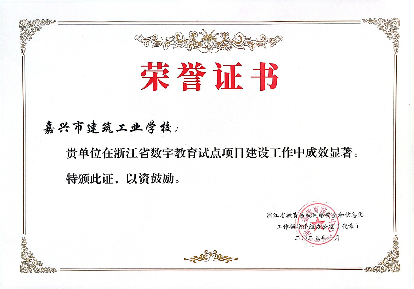 2023年3月,浙江省教育廳發布《浙江省教育廳辦公室關于公布數字教育試點單位名單的通知》(浙教辦函〔2023〕65號),公布了浙江省職業教育信息化標桿學校名單,嘉興市建筑工業學校成功入選。經過兩年多的建設,嘉興市建筑工業學校數字教育試點項目建設工作圓滿收官!
