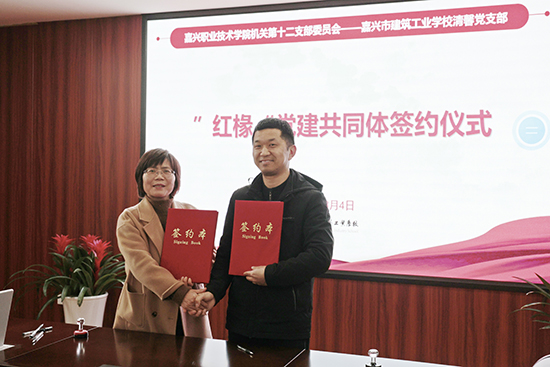 雙方還舉行了“大中小學思政課一體化建設”簽約及授牌儀式,中共嘉興職業技術學院機關第十二支部委員會與中共嘉興建筑工業學校清馨黨支部委員會簽訂了“紅椽”黨建共同體合作協議。