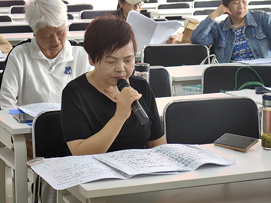 5月6日上午,安吉縣社區(qū)教育學(xué)院靈峰學(xué)習(xí)中心(靈峰成校)教室里不時響起熱烈的掌聲,越劇班《十八相送》匯報演唱活動在正在進(jìn)行。此次活動中,學(xué)員們兩人一組進(jìn)行表演,在這傳統(tǒng)戲曲的演繹中展現(xiàn)出別樣風(fēng)采。