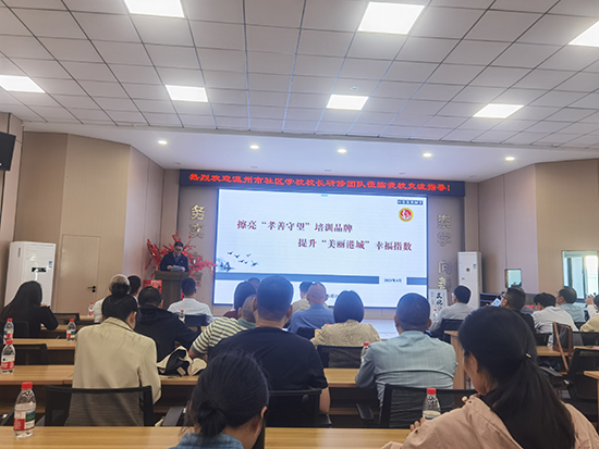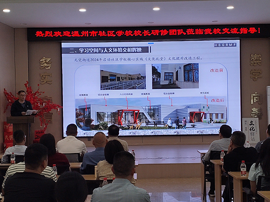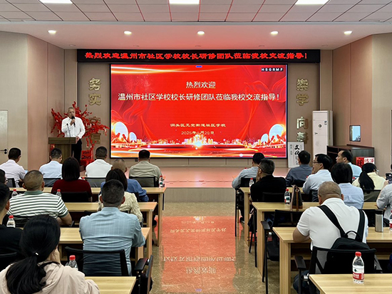 4月29日下午,溫州市社區學校校長研討團隊一行70余人走進洞頭區,開展社區教育高質量發展考察交流活動。洞頭區教育局黨委委員、副局長陳金鑫,教育科科長林攀術、副科長陳松財、社區學院院長陳海偉等陪同活動。
