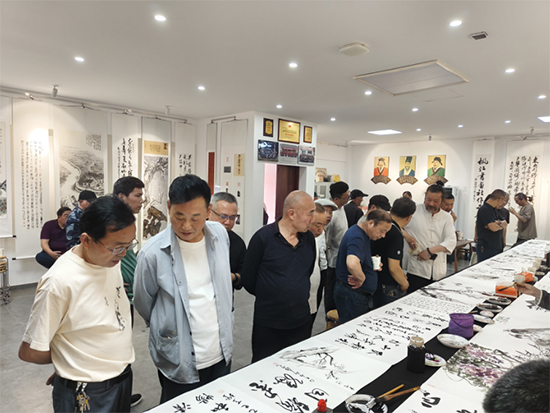 5月1日下午,諸暨市楓橋鎮的“楓橋鄉賢會館”內歡笑聲不斷,諸暨市古越書畫院與楓江書畫社的50多名社員歡聚一堂,在展覽廳舉行聯誼活動。