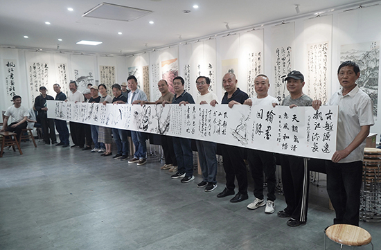 據悉,具有千年歷史古鎮的楓橋,山清水秀,人杰地靈。涌現了王冕、楊維楨、陳洪綬三位立德、立功、立賢的杰出鄉賢。在“楓橋三賢館”開館之際,古越書畫院·楓江書畫社聯合舉辦筆會聯誼活動。傳承先賢文墨結晶,提升書畫工作者自我素養,盡力為地方文化建設添磚加瓦!五十多人暢懷抒抱,共賞雅韻流芳。(孫文明)