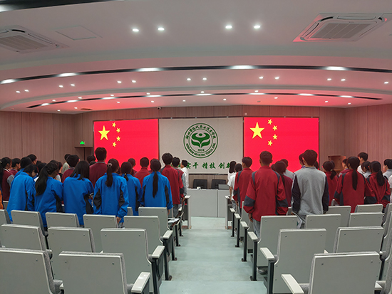 儀式在莊嚴(yán)的國歌聲中隆重拉開帷幕,與會師生全體起立,唱響國歌。