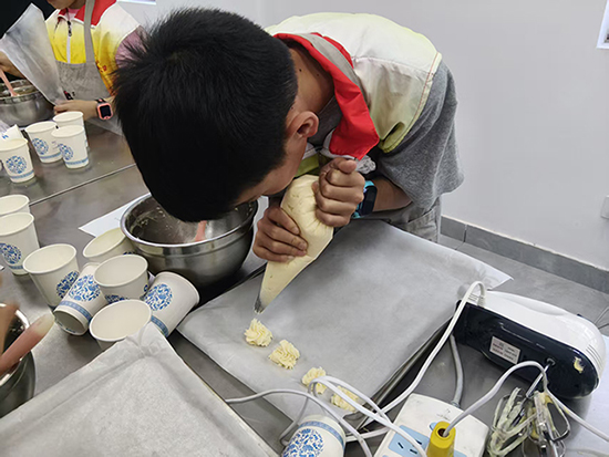活動現場,呂櫻老師以通俗易懂的語言詳細講解了曲奇制作的關鍵步驟,從黃油軟化、面粉篩分到裱花塑形,每一個環節都進行了細致示范。家長和孩子們分組協作,揉面、擠花、烘焙,在溫馨的互動中感受烘焙的樂趣。“媽媽,你看我的曲奇像不像小花朵?”孩子們舉著自己的作品興奮地展示,烘焙室內充滿了歡聲笑語。經過一個多小時的耐心等待,金黃酥脆的曲奇餅干新鮮出爐,大家迫不及待地品嘗自己的勞動成果,紛紛稱贊“比買的還好吃”。