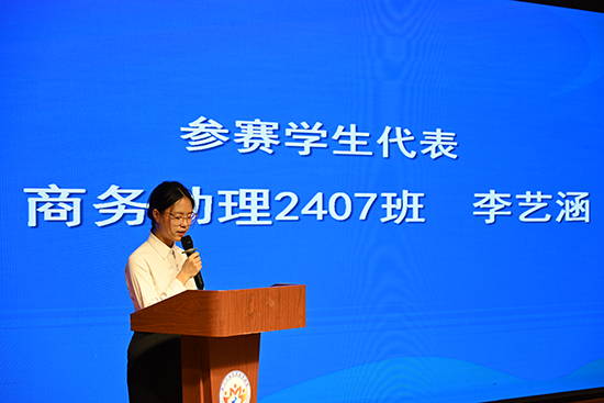 商助2407班李藝涵作為學生代表鄭重承諾,將以專業態度認真參賽,以團隊精神協作共贏,以賽事內核提升自我,把賽場當作未來職場的第一站!