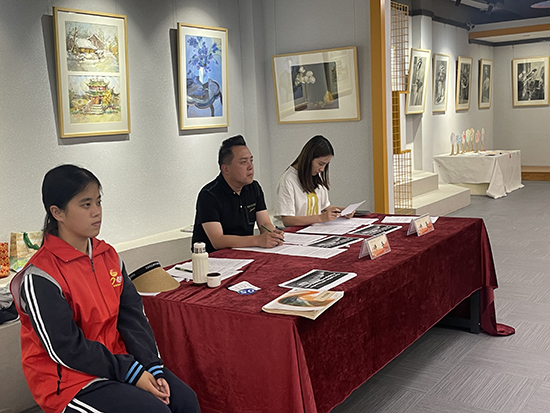 暢游之前,領導及來賓們對藝術類“未來AI課堂”海報設計、“未來生活”場景設計兩大賽事的決賽作品進行了現場票選。