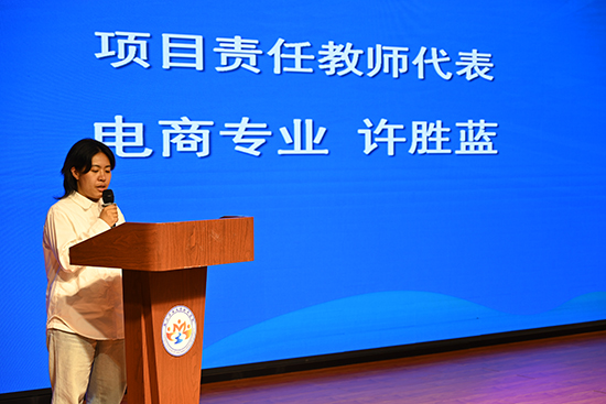 外貿比賽項目責任教師許勝藍老師作為教師代表發言。她表示,所有競賽項目將秉持公平、公正、公開的原則,確保評價的客觀性,也希望同學們銘記競賽的意義在于過程中的沉淀與突破,AI時代不僅需要技術嫻熟者,還需要敢于試錯、善于反思的開拓者!
