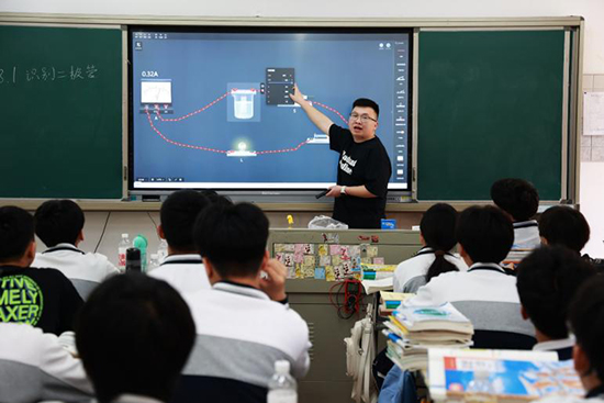 吳逸愷老師的《識別二極管》,旨在幫助學生認識半導體材料的導電特性,會識別二極管的外形、圖形符號和二極管的極性。課堂借助動畫演示抽象概念,采用虛實結合教學場景,培養了學生創新意識與團隊協作能力。學生在游戲化任務中組隊攻關,既感受了電子技術魅力,又激發了對智能科技探索的熱情。