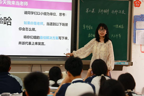夏李蕊老師的《良師相伴 亦師亦友》一課基于真實情境展開,以模仿老師上課的動作相結合的多模態展現,將思政知識直觀化、豐富化,激發孩子思政學習興趣的同時幫助孩子理解老師,尊重老師。夏老師通過邏輯清晰、層層遞進的活動鏈,不斷激發學生的思維。在猜一猜、演一演等教學活動中,逐步培養起學生的共情能力,學會相互尊重。