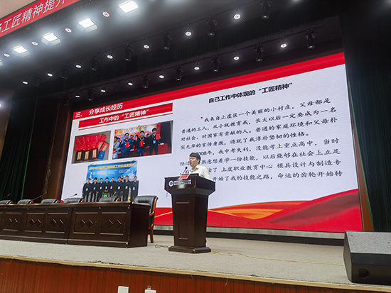 報告會上,羅葉楓生動地闡述了工匠精神的內涵——守正創新、愛崗敬業、持之以恒、精益求精。他結合自身工作經歷,分享了一個個踐行工匠精神的動人故事。在光伏半導體高端裝備研發過程中,面對重重技術難題,他帶領團隊毫不退縮,尤其是在與日本合作方缺乏詳細指導的困境下,團隊自主梳理設備原理和精度要求,在較短的時間里自制出專用工裝治具,成功攻克了高難度任務,為企業創造了可觀的銷售額,有力推動了高端半導體材料裝備的發展。
