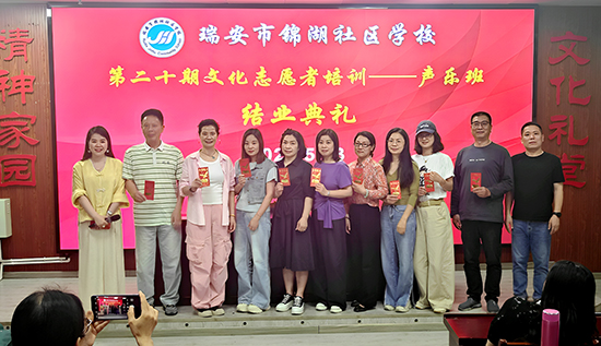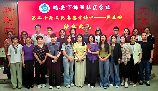 據悉,錦湖社區(qū)學校聲樂班已累計培養(yǎng)基層文化骨干300余人,學員們組建的“瑞安市舒韻藝術團”常年活躍在鄉(xiāng)村舞臺。本次結業(yè)不是終點,而是文化服務的新起點——學員們即將帶著所學走進村居禮堂、文化廣場,用歌聲傳遞新時代文明風尚,讓藝術之花在田間地頭絢麗綻放。