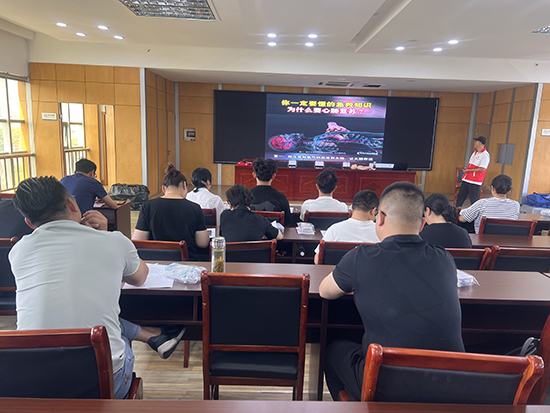 上午的培訓中,丁老師聚焦氣道異物梗阻、CPR(心肺復蘇)及AED(自動體外除顫器)使用等關鍵知識點展開講解。他一邊詳細闡述理論知識,一邊進行現場示范,讓社區工作者們能夠直觀地了解操作要領。氣道異物梗阻的處理方法、CPR的正確按壓頻率和深度、AED的使用流程等,每一個細節丁老師都講解得細致入微,確保大家能夠準確掌握。