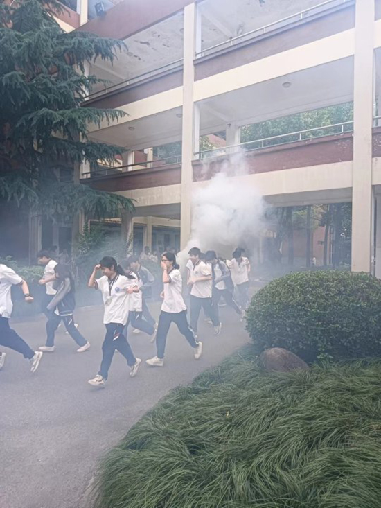 隨著一陣急促的警報聲響起,演練正式拉開帷幕。模擬地震和火災發生時,教學樓瞬間晃動和彌漫濃煙,師生們迅速反應,按照培訓要求,立即采取緊急避險措施。各班級學生在老師的帶領下,迅速、有序地從教室出發,沿著預定的疏散路線,快速向操場安全區域撤離。整個疏散過程中,師生們行動迅速、配合默契,沒有出現擁擠、推搡等現象。各班級到達操場后,迅速整隊,清點人數,確保每一名學生都安全撤離。