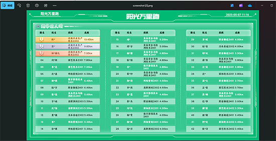 體育組馮鋒鋒老師說:“這次活動是一次非常成功的嘗試。智慧跑步系統的動態排名功能有效調動了學生的運動積極性,形成良性競爭氛圍,促進運動習慣的培養。教師端生成的多維運動數據分析,為日常體育教學工作提供數據支撐。”