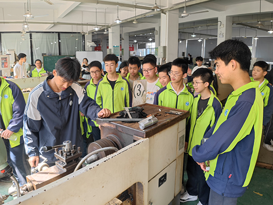 云和二中、云和三中、梅源中學的校領導親自帶隊,組織初三師生走進云和職技校。在專業小導游的引導下,參觀團深入木制玩具設計與制作、電氣設備運行與控制、數控技術運用、新能源汽車運用與維修、電子商務、旅游服務與管理等專業實訓基地。在木玩創客體驗中心,同學們被琳瑯滿目、匠心獨運的木制玩具所吸引,仔細觀察并積極參與到體驗之中,感受木玩創作的樂趣;在專業實訓基地,同學們面對精良的專業技術設備驚嘆不已,眼神中充滿好奇與期待,紛紛摩拳擦掌,想要親自上手操作,近距離感受專業技術的魅力。