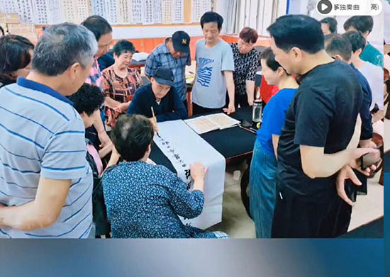 每周三上午的書法課成了大家最期待的時光。學員們都會早早來到學校,交作業(yè)、討論筆法、相約購買新的紙和筆……,教室里洋溢著一種年輕人難以企及的專注與歡樂。為了臨摹好一張作業(yè),有人寫三米長的卷,有人廢寢忘食地練習,有人甚至半夜起身揮毫……,班長大老虎說:“我們不是在和古人比書法,而是在學習如何與時間相處。”在學員們用心書寫的筆觸里,是王羲之筆下“快然自足,不知老之將至”的灑脫精神。
