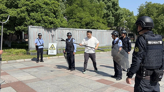 為進一步增強學校保安員的反恐防暴意識,提升校園應急處置能力,5月12日上午,德清職業中專開展了一場別開生面的反恐防暴演練。此次演練由校黨委委員馬紀孝主持,保障處相關老師及全體保安員參加,德清縣公安局特警大隊來校指導。