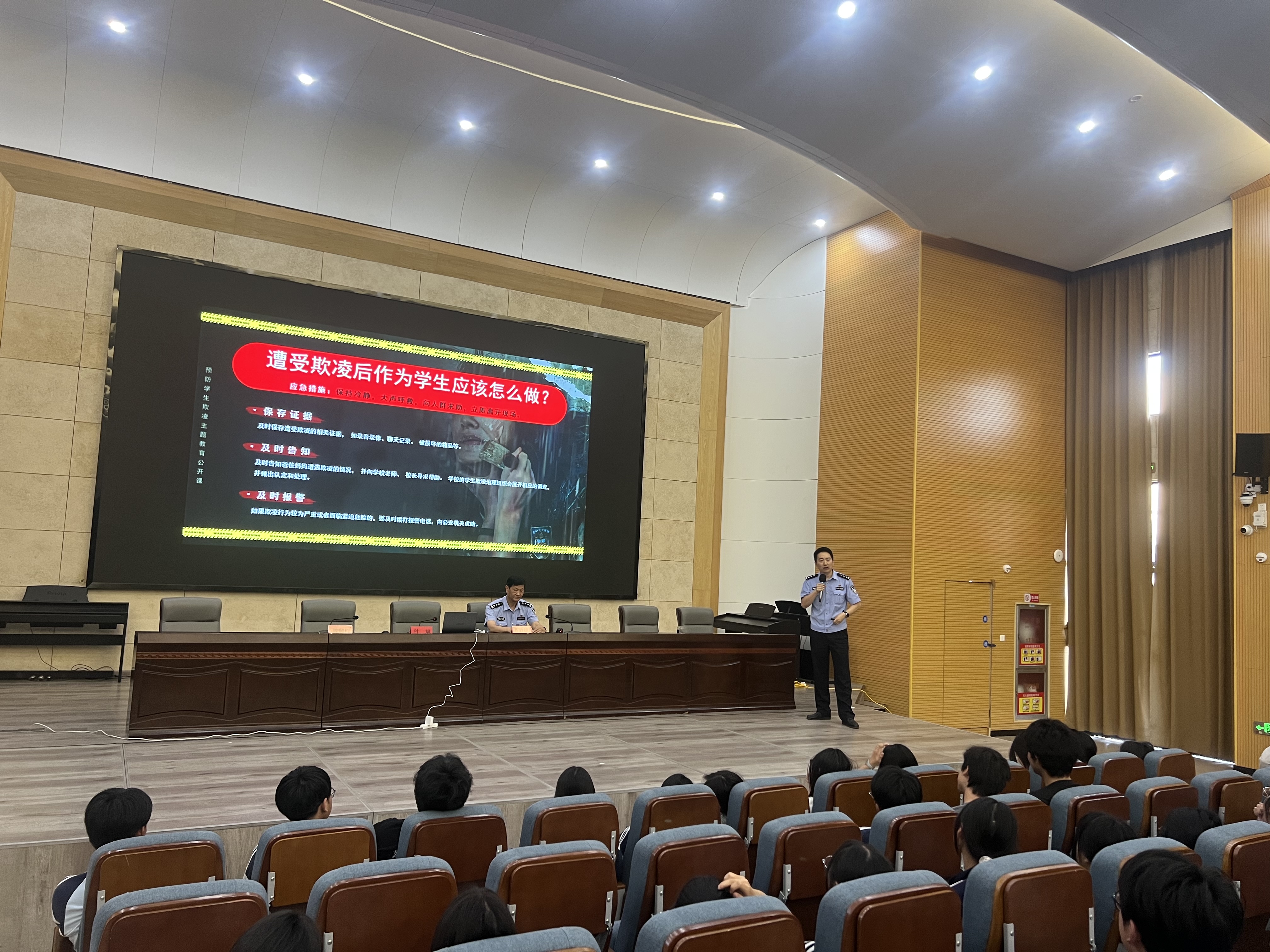 楓橋派出所的魏越鋒警官結合一個個真實事件講述了校園欺凌的危害——讀書時期的不懂事、不懂法,凡記錄在案的,會成為人生的污點,甚至影響后代。告誡學生們一定要嚴守法律法規,切不可一失足成千古恨。學生面對一件件發生 在身邊的案件,觸目驚心,有的甚至自己也做過。魏越鋒指出除了法律約束校園欺凌外,還需加強個人道德修養:具有同情心,不做欺凌者;不旁觀不傳播,盡量在能力范圍內幫助被欺凌者;學會自我保護,避免成為受害者。