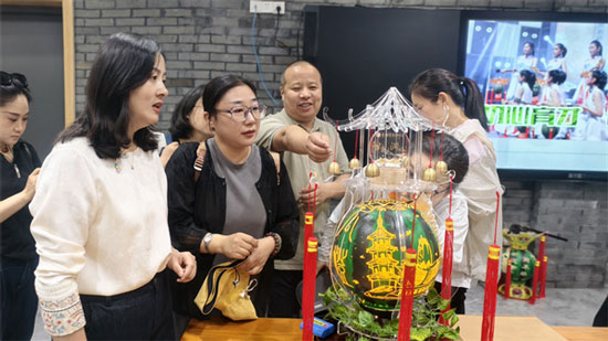 在平湖市東湖中學,學員們深入考察省級非遺“西瓜燈雕刻”“喜印制作”等特色課程。學生在瓜皮上雕琢山水花鳥的精湛技藝,以及傳統紋樣與現代設計融合的印章藝術,展現了非遺文化的創新轉化,為參訓學員提供了傳統文化進課堂的鮮活案例。