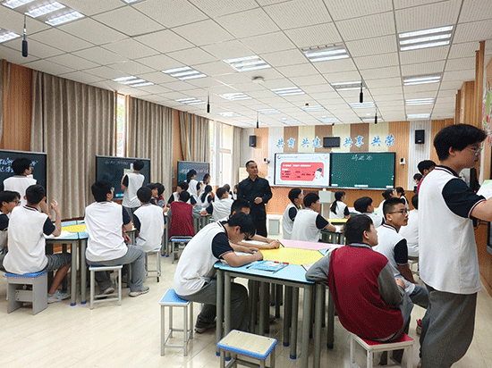 在校本部錄播教室,語文課堂展開傳統文化現代轉化新探索:張素敏老師以《邊城》中的美學意境為切入點,引導學生創作“心中最美的邊城”數字畫卷,將文學鑒賞轉化為視覺表達;徐文達在《將進酒》教學中融合詩詞誦讀與酒器設計,學生通過數控雕刻機制作詩意酒器,詮釋“詩酒趁年華”的工匠情懷;丁喆老師借《我與地壇》啟發學生設計“時光展覽館”,用工程制圖軟件呈現文學療愈與生命哲思的跨界對話。