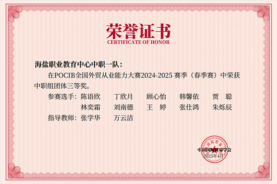 近日,海鹽職業教育中心在第十四屆POCIB全國外貿從業能力大賽(春季賽)、第十一屆OCALE全國跨境電商創新創業能力大賽(春季賽)取得多項獎牌。