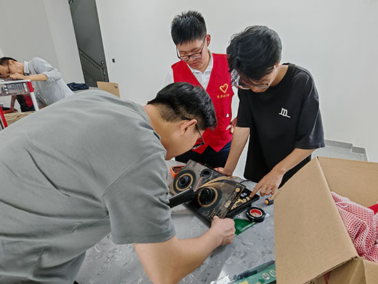 活動現場,“家電維修志愿服務”的紅色橫幅格外醒目,吸引了眾多居民前來。志愿者們迅速分工協作,將待修家電分類擺放,有條不紊地開展工作。面對居民送來的故障微波爐、電風扇、熱水壺等各類家電,志愿者們仔細詢問故障現象,利用萬用表、電烙鐵等專業工具,憑借所學知識認真排查故障。有的志愿者專注地拆卸電器外殼,仔細檢查電路板上的元件;有的則耐心地與居民溝通,詳細講解家電日常使用和保養的注意事項。