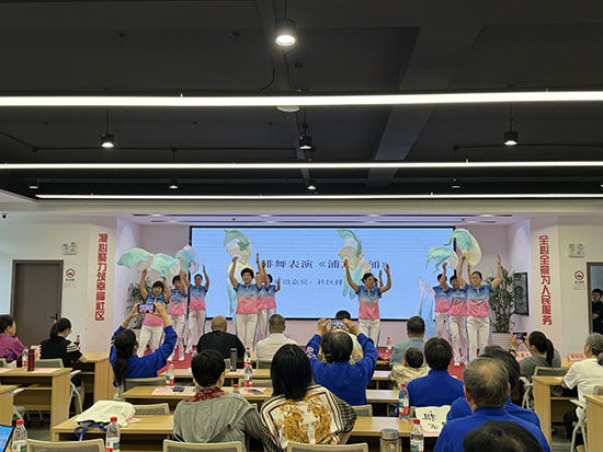 最具突破性的“多元風(fēng)采”篇章,浦沿街道銀發(fā)宣講團(tuán)成員、社區(qū)老年大學(xué)越劇班教師吳桂玲帶領(lǐng)學(xué)員將《文明公約》化作越劇新韻,移風(fēng)易俗詞句與《何文秀》曲牌碰撞出奇妙的化學(xué)反應(yīng),傳統(tǒng)戲曲與社區(qū)文明建設(shè)深度融合,通過藝術(shù)浸潤實(shí)現(xiàn)文明公約從“墻上條文”到“心上共識”升華,學(xué)員們齊聲哼唱,文明意識入腦入心。健身氣功班《五禽戲》的虎鹿熊猿鳥意象,與科普機(jī)器人展演的科技光影交相輝映,構(gòu)成一幅“古法今用”的生動圖景。這種傳統(tǒng)養(yǎng)生智慧與現(xiàn)代科技的同臺對話,恰是終身學(xué)習(xí)理念的最佳注腳。“大家今天展演的不是招式,而是五千年的血脈傳承。”健身氣功班教師李明表示。