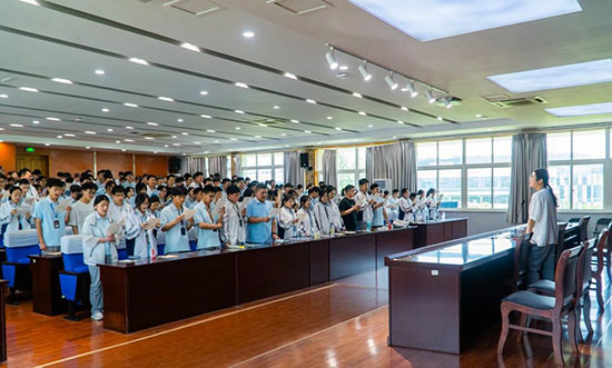 開班儀式由校團委書記、校政教處副處長魯雯雯主持,校黨委委員馬紀孝出席,智造系團總支書記金萍、經(jīng)信系團總支書記李曉琳及290多名學生參加。