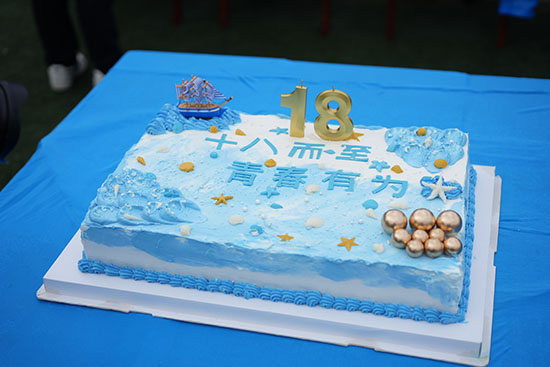 隨后,副校長馮朋員與全體學子共唱生日歌,點亮“18”字蠟燭,將這一天定格為共同的生日。