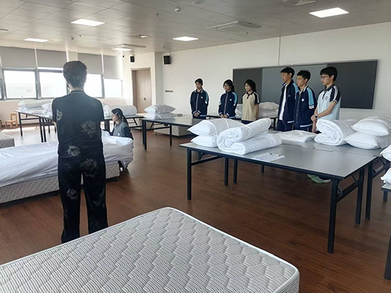 自得知大賽消息起,該校胡可凡同學便迅速投入到緊張的訓練當中。林建丹、徐宋玲兩位指導老師為該生制定了一套科學的訓練計劃。針對綜合知識理論考核,該生每日花費大量時間進行知識點的梳理與記憶,通過不斷刷題來提升自己的解題能力和分析能力。為了提高英語水平,堅持每日練習口語,模仿標準發音,與老師和同學進行英語對話練習,積累了豐富的口語表達素材。現場操作訓練中式鋪床環節,她每天反復練習無數次,從床單的平整鋪設到被角的折疊,每一個動作都力求做到精準、規范、迅速。無數個日夜的努力,只為在賽場上展現出最佳狀態。