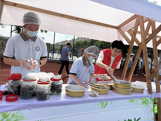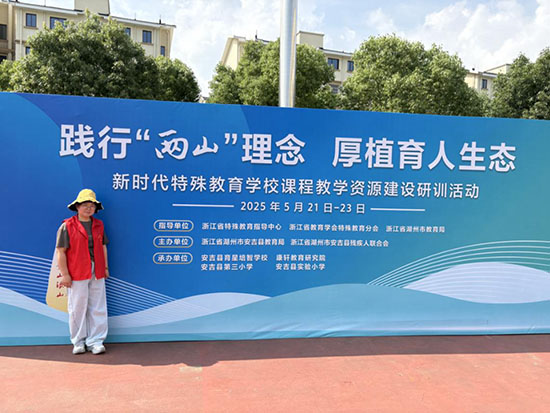 5月21日至23日,安吉縣育星培智學校與其他三所學校聯合承辦“踐行‘兩山’理念 厚植育人生態——新時代特殊教育學校課程教學資源建設研訓活動”。在22日上午的主題活動中,育星培智學校的老師和同學們共同“出攤”,展示由老師指導、學生完成的手工藝品和安吉特產。龔天萍老師帶領學校青年教師周斌斌赴育興培智學校參與當天上午活動的志愿服務工作。