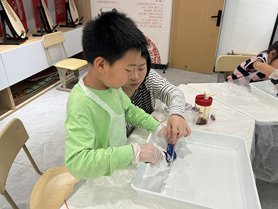 此次植物扎染活動不僅讓孩子們體驗到了傳統非遺技藝的魅力,更在親子互動中傳遞了愛意,增強了家庭成員間的情感聯系。家庭是兒童成長的重要環境,通過此類活動,不僅促進了親子關系的和諧,也培養了孩子們的動手能力和創造力。