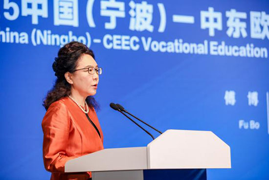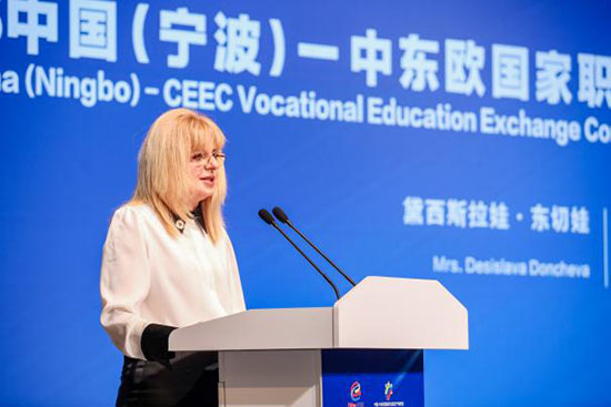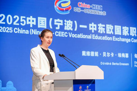 中國教育國際交流協(xié)會副秘書長傅博,中國—中東歐國家合作秘書處辦公室副主任姜超,浙江省教育廳國際合作與交流處處長藍(lán)晶晶,寧波市教育局副局長陳金輝,寧波博洋控股集團(tuán)有限公司黨委副書記張英,匈牙利教育署國家獎學(xué)金司司長戴維德妮·貝爾卡·埃梅塞,保中工業(yè)發(fā)展商會主席黛西斯拉娃·東切娃以及來自中國與中東歐國家的教育行政部門、職業(yè)院校、行業(yè)企業(yè)及國際組織代表200余人出席。