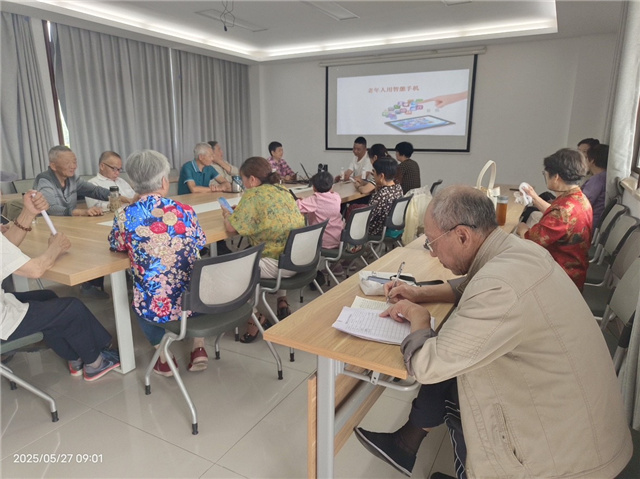 為進一步提升老年人運用智能手機技術的能力,幫助老年人智享銀齡生活,5月26日上午,安吉社區教育學院梅溪分院在龍翔社區組織開展老年人運用智能技術專項普及培訓,共有20名老年人前來學習。