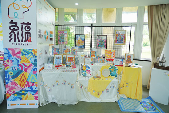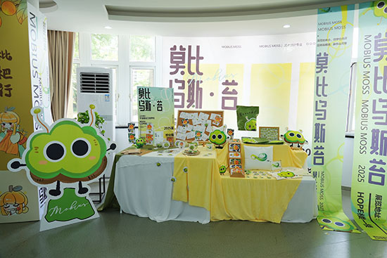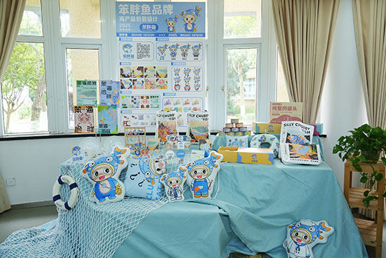 “莫比烏斯?苔”這一主題融合了“苔花如米小,也學牡丹開”的堅韌精神與莫比烏斯環的無限循環意象,展現了傳統文化在創新中永續發展的可能。在展覽中,五大創意項目各具特色。國潮品牌“枇杷行”將明黃色調與中國水墨元素完美結合,打造出溫婉靈動的“蘆枝”形象;“笨胖魚”系列用高飽和色彩構建童趣海洋世界,為海產品注入鮮活個性;非遺美食“包蘿萬象”通過清新自然的包裝設計,讓傳統蘿卜團煥發新生;“海天之靈”項目則用藝術手法呼吁保護棲息在象山的中華鳳頭燕鷗;而“象蘊”系列通過12處地標建筑的創意插畫,繪制出一幅生動的文旅地圖。“我們同學希望這些作品不僅是藝術創作,更能成為象山文旅的新名片,吸引更多人來探索這座東海小城的獨特韻味。”專業指導教師王佳妮動情地表示。