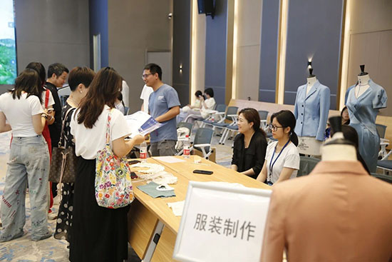 在服裝制作展位,師生們展示了精湛的裁剪與縫紉技藝,參與者在專業指導下親手制作服裝樣片,感受時尚魅力。