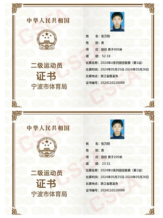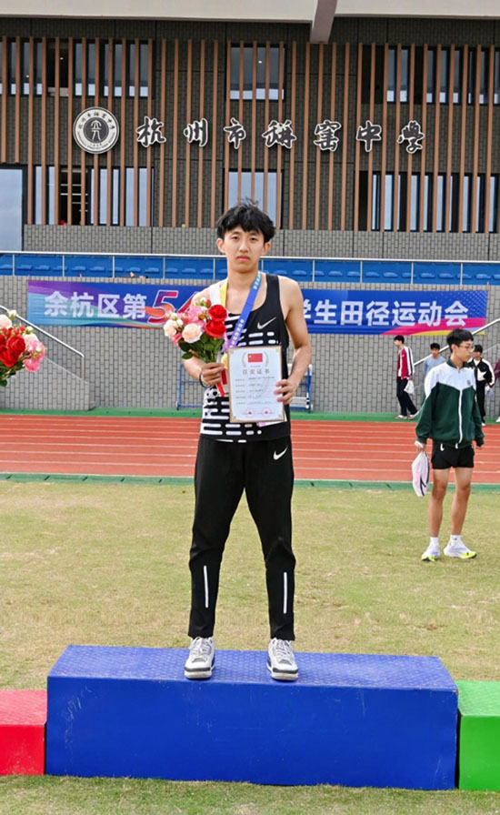 2024年余杭區(qū)中小學(xué)生田徑運(yùn)動(dòng)會(huì),張萬(wàn)陽(yáng)以50.08秒沖過(guò)終點(diǎn)線時(shí),塵封10余年的男子400米紀(jì)錄就此改寫(xiě)。這位被教練稱(chēng)為“田徑場(chǎng)上的永動(dòng)機(jī)”的少年,在省級(jí)賽事中接連獲得400米、200米國(guó)家二級(jí)運(yùn)動(dòng)員證書(shū)。其訓(xùn)練日志里密密麻麻記錄著400余次起跑反應(yīng)測(cè)試、200余組間歇訓(xùn)練數(shù)據(jù)。張萬(wàn)陽(yáng)的主管教練俞冬君由衷感嘆:“張萬(wàn)陽(yáng)的成功絕非偶然,不是幸運(yùn)的降臨,而是他持之以恒、鍥而不舍訓(xùn)練的結(jié)果。”