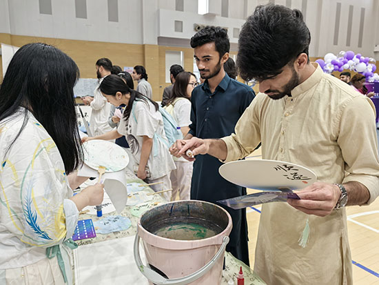 作為文化交流的重要組成部分,杭州市濱江區浦沿街道東信社區精心設置中國傳統文化漆扇制作體驗區。身著宋韻服飾的社工,現場細致講解漆扇從設計、上色到修飾的全過程,生動展現中華傳統文化的深厚底蘊。國際學生積極參與互動,親手制作漆扇,近距離感受中華優秀傳統文化的獨特魅力。