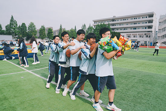 距離高考還有8天,今天(5月29日)一早,寧波東錢湖旅游學(xué)校組織高三9個(gè)班級(jí)的同學(xué)在操場(chǎng)搶零食解壓,樂(lè)戰(zhàn)高考。操場(chǎng)中央放置了一個(gè)氣墊,上面放滿了各種零食,每個(gè)班級(jí)以氣墊為中心,站在氣墊10米以外。每個(gè)班級(jí)5人一組,前后夾球前行,到操場(chǎng)中央的零食區(qū)搶零食,過(guò)程中球不能掉落,考驗(yàn)團(tuán)隊(duì)協(xié)作能力。后方,班主任老師、任課老師、全班同學(xué)為同學(xué)們加油吶喊。大家爭(zhēng)分奪秒、其樂(lè)融融、盡情釋放活力,在歡樂(lè)中釋放壓力。