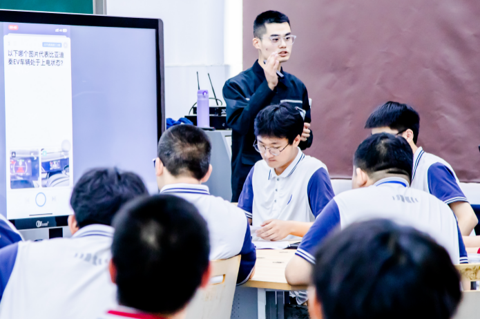 活動伊始,兩節優質課堂率先“登場”。兩位主講人從入選任務中截取部分教學環節進行課堂展示,其余人員旁聽。長興技師學院電子商務專業教師朱丹從“長興紫筍茶網店商品發布與維護”學習任務中選取部分教學內容授課,學生在“關鍵詞尋寶”互動中,掌握了淘寶商品標題撰寫的核心要領。湖州交通技師學院新能源汽車檢測與維修專業教師范怡鋒提取了“吉利帝豪EV300動力蓄電池故障檢修”學習任務六個環節的關鍵部分進行展示,學生化身“汽車醫生”排查故障,更借助DeepSeek、可識讀手牌、豆包智能體等數字化手段加強了課堂的科技感。